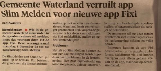Gemeente Waterland verruilt app Slim Melden voor nieuwe app Fixi